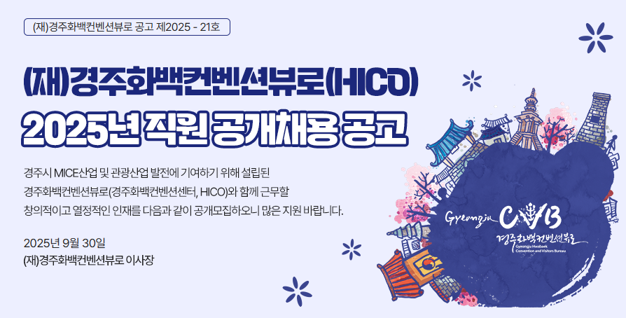 - ( 재)경주화백컨벤션뷰로 계약직 직원(신입, 청년) 채용 최종합격자 발표